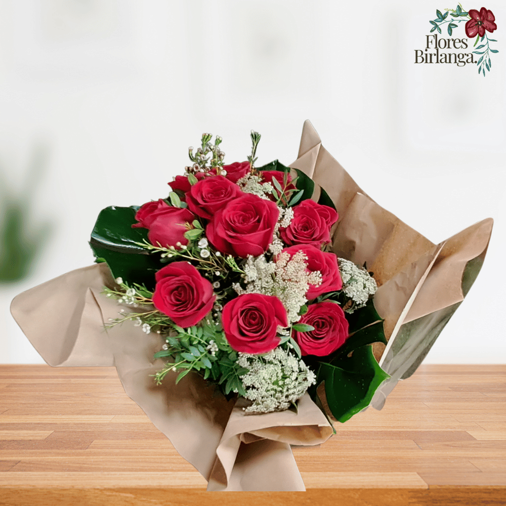 Este ramo combina la fuerza simbólica de las rosas rojas con una selección de follajes y flores complementarias que aportan textura, volumen y sofisticación. Ideal para ocasiones especiales donde el detalle lo dice todo.